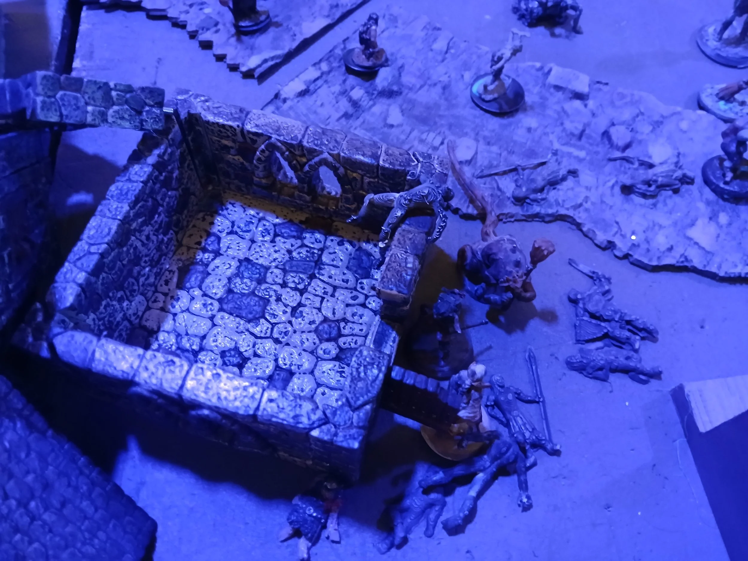 Chillax tried to incapacitate it but instead it snatched him out of the sky and ate him. But Chillax, being much cooler than me, simply appeared on the balcony a few feet away. The abomination seemed to lose interest in us and wandered away stuffing the dead into his body. Oberon took care of the dog, and we all went after one-eyed and were able to bring him down. Pinroy told us he could see a mountain in the distance and looked like a keep built into it. That must be where we destroy the staff.
