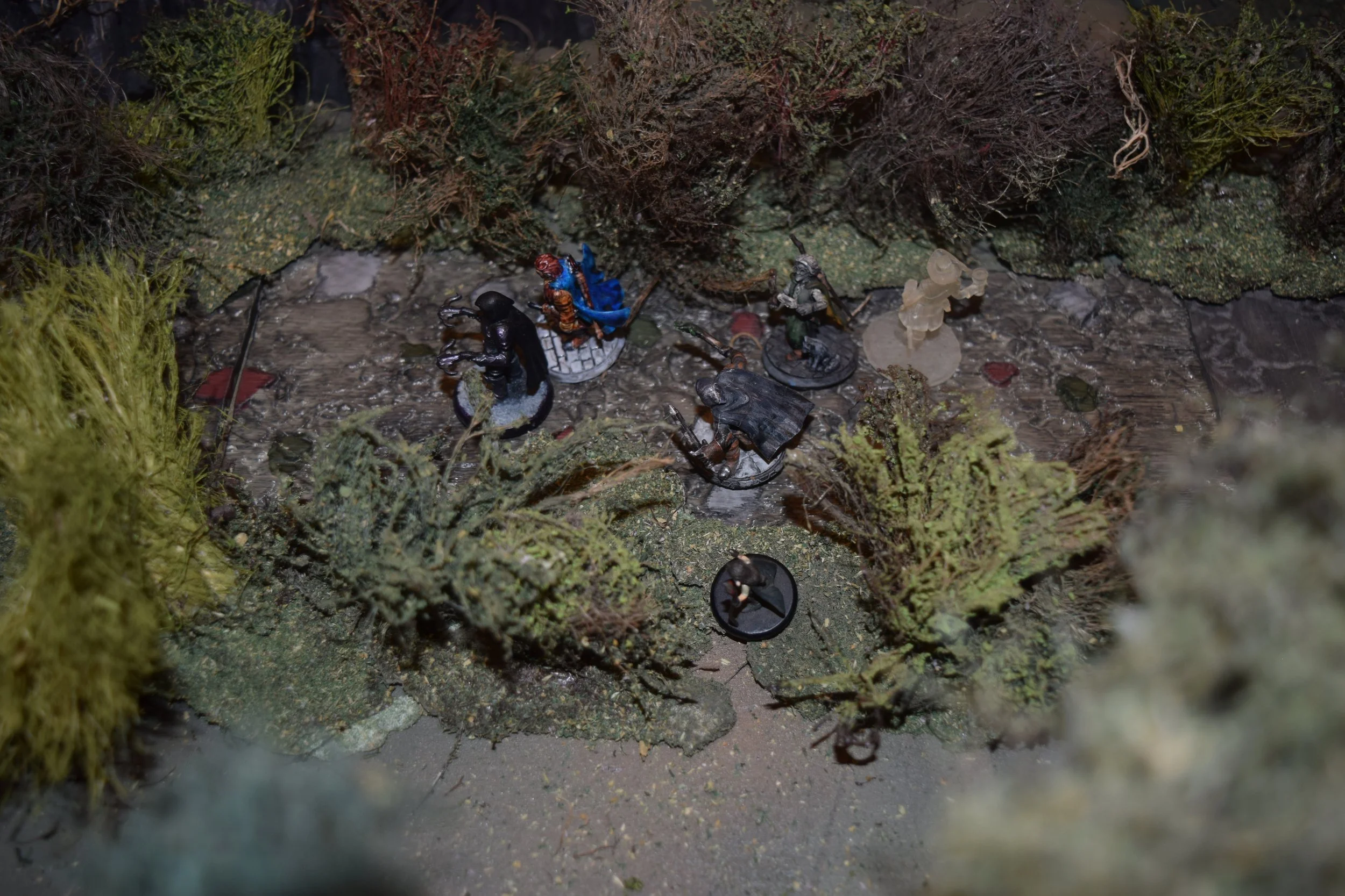 With bribes in hand, we headed into the woods and Ed led us to the ambush place. We called out we wanted to meet their chief and we offer gifts for safe passage through the woods. One of the orcs came forward and said he would take one of us to negotiate with their chief. We knew the caravan had to come this way and felt this would be a perfect site for an ambush…but we needed the orcs on our side. Leroy paid the chief 4,000 gold to hire the entire tribe for a week. With the orcs, the centaurs, and Chief’s bandits, we just might be able to pull off this heist.
